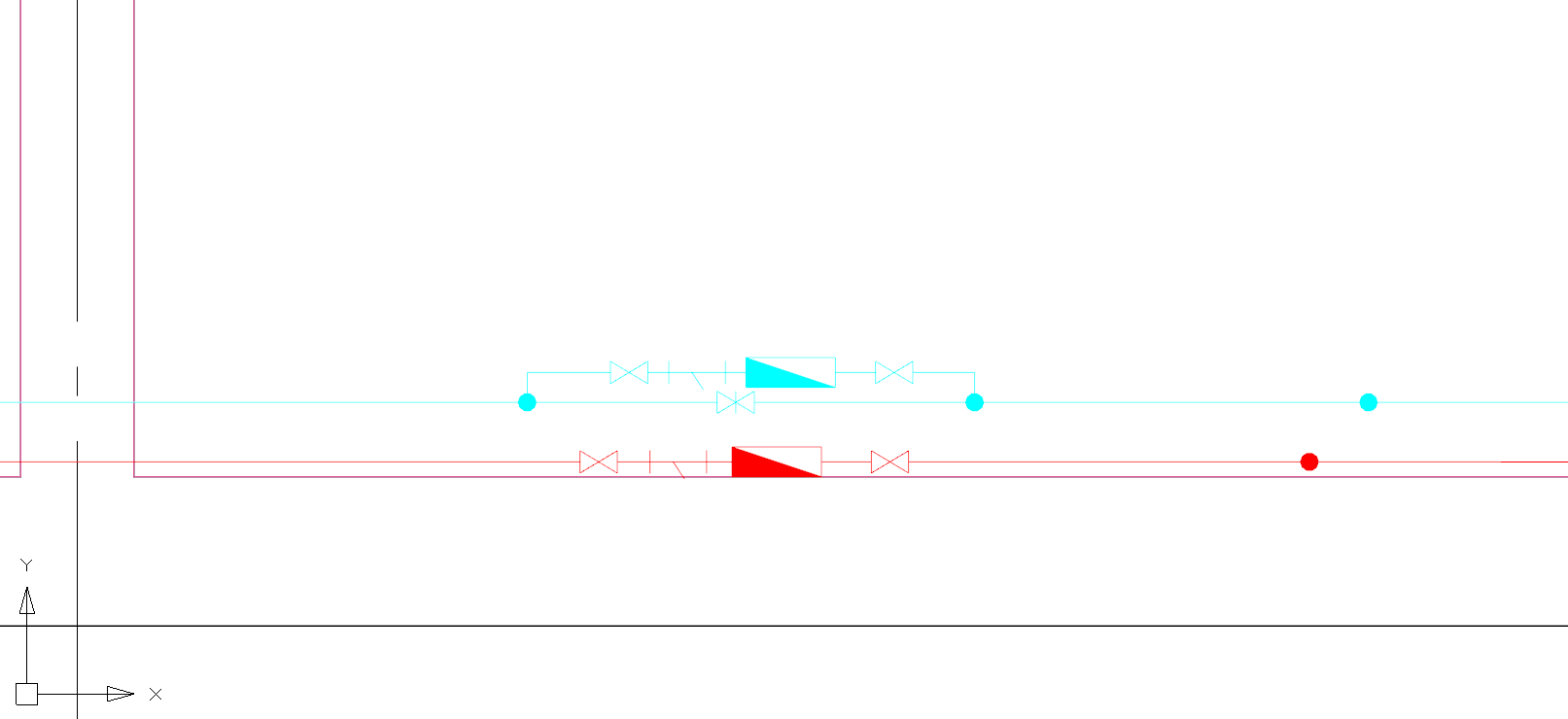 Холодная и горячая трубы отображаются несколькими трассами на плане, которые идут параллельно с некоторым отступом в плоскости XOY друг от друга. В реальном пространстве они располагаются друг над другом.